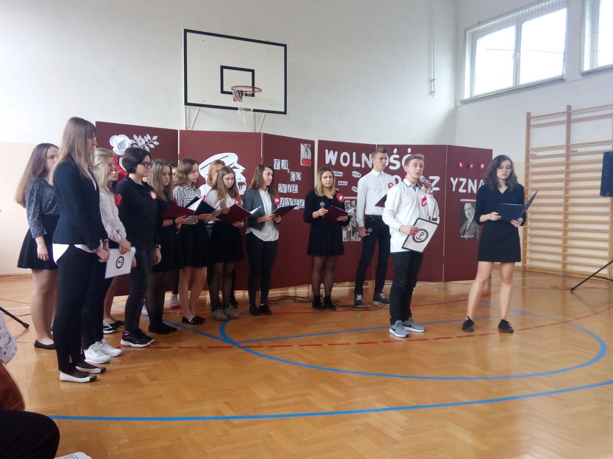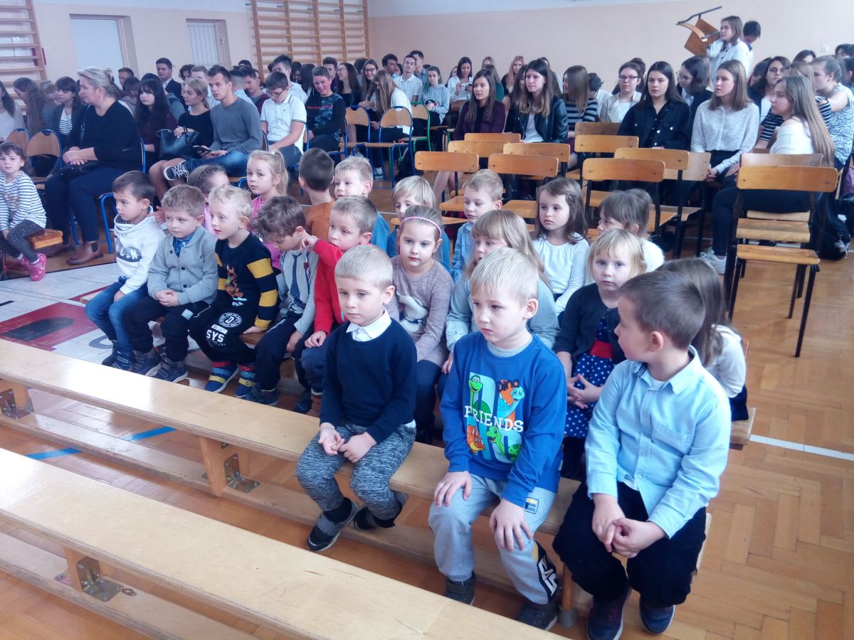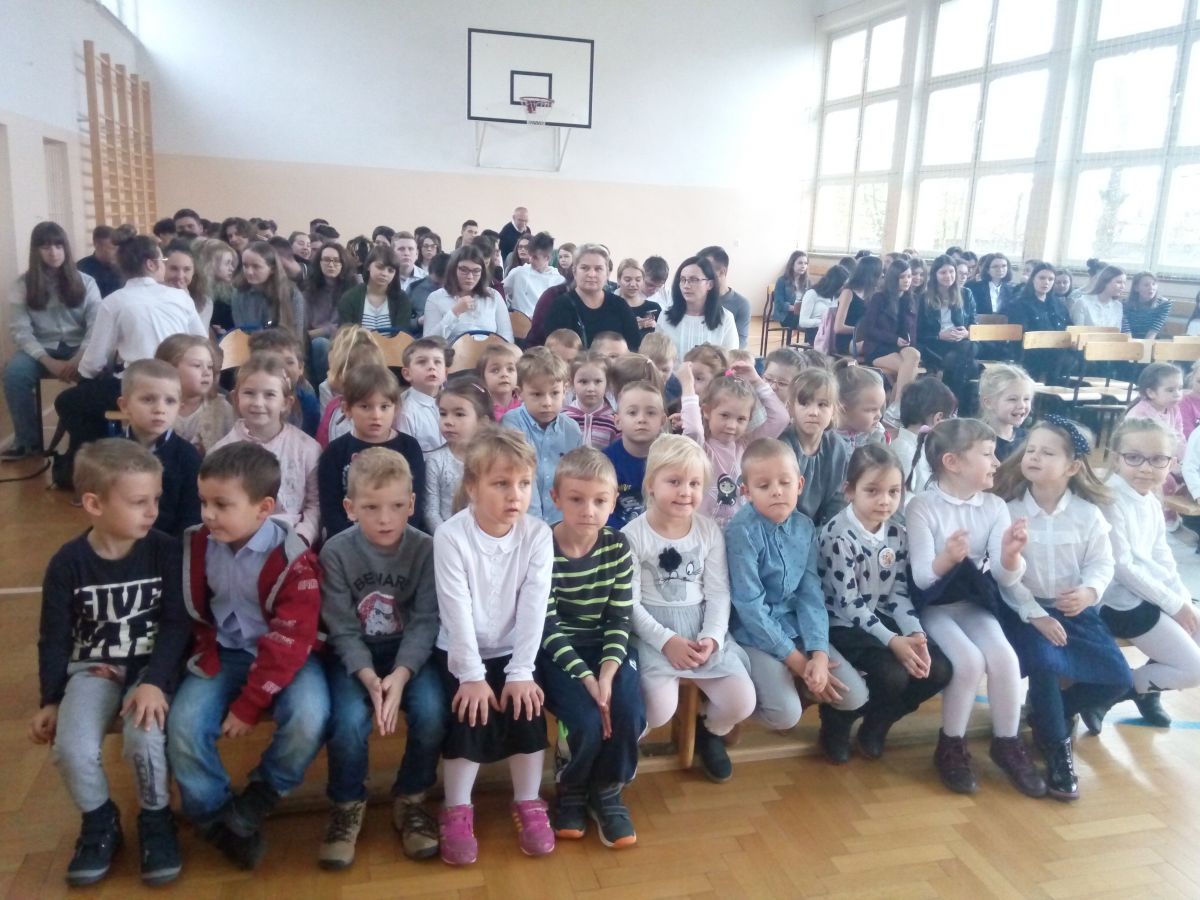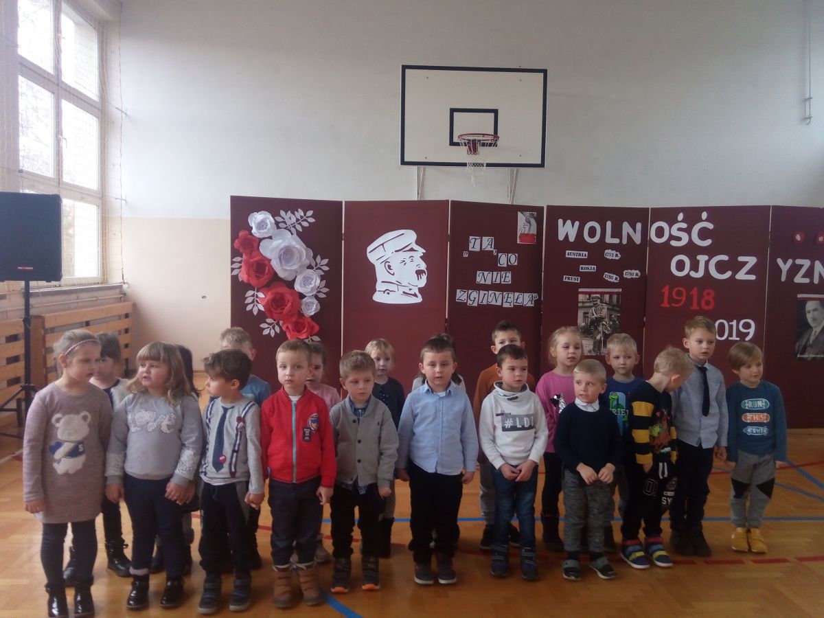 Dzieci z grup: Zajączki, Żabki i Motylki wraz z wychowawczyniami zostały zaproszone na apel do Liceum Ogólnokształcącego w Mszczonowie z okazji Święta Niepodległości. Przedszkolaki zostały ciepło i serdecznie przyjęci i przywitani przez panią dyrektor, pracowników i uczniów liceum. Dzieci obejrzały montaż słowno – muzyczny przygotowany przez młodzież licealną. Następnie rozwiązywały zagadki związane z obchodzonym świętem. Na koniec pięciolatki zaprezentowały przygotowane pieśni patriotyczne społeczności licealnej pt. „Wojenko, wojenki” oraz „ Rozkwitały pąki białych róż” przy akompaniamencie muzyków z LO. W dobrych nastrojach wracały do przedszkola.