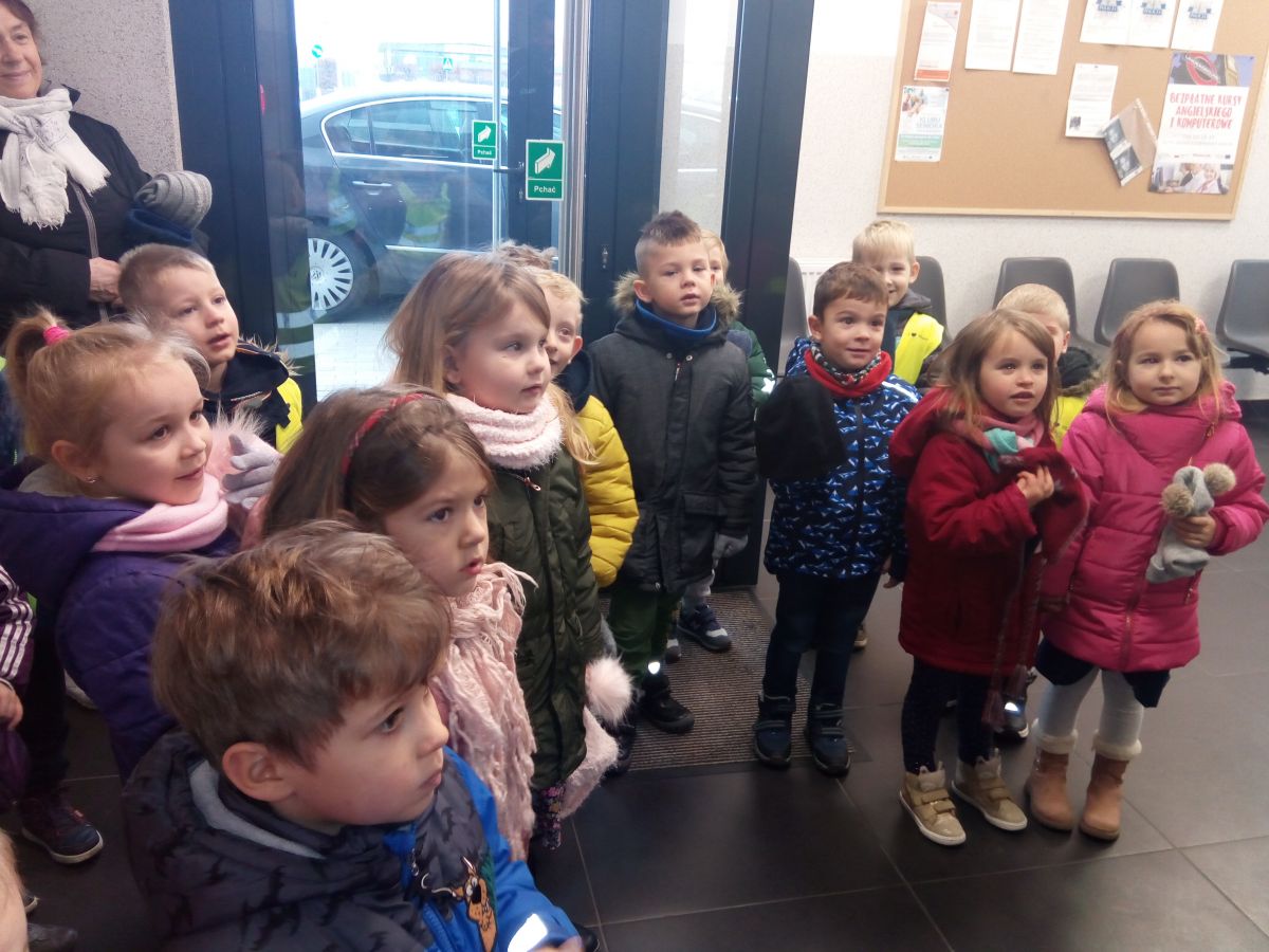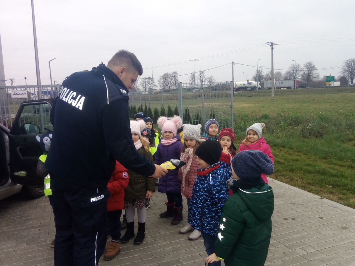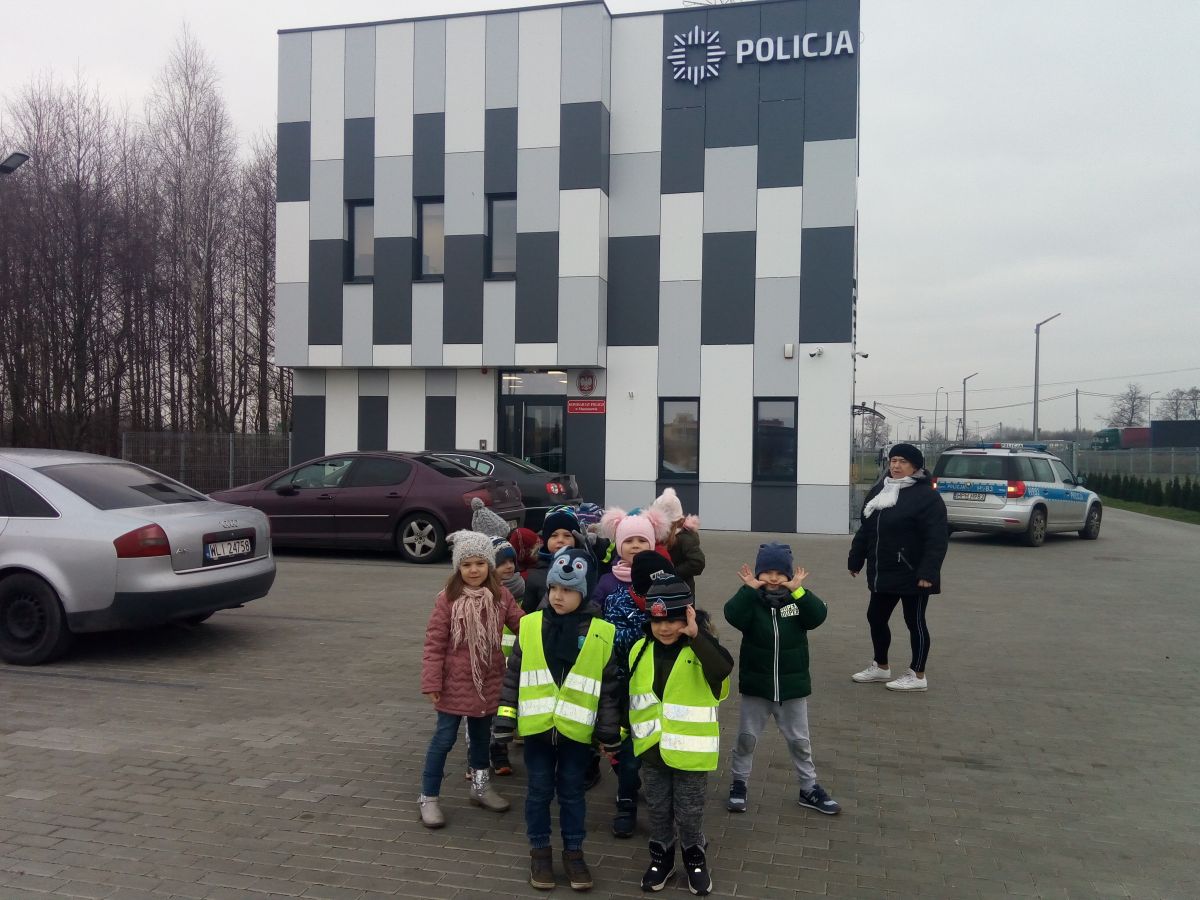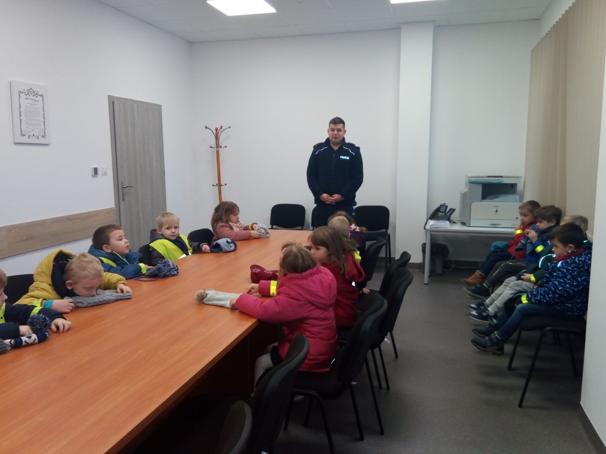 Dnia 27.11.2019 dzieci z gr. Zajączki odwiedziły Komisariat Policji w Mszczonowie. Podczas spotkania z sierż. sztab. Arkadiusz Wójcik dzieci dowiedziały się na czym polega praca policjanta, dlaczego jest ważna, odpowiedzialna i niebezpieczna. Zwiedziły niektóre pomieszczania komisariatu, poznały ich wyposażenie. Duże zainteresowanie wywołało umundurowanie policjanta oraz akcesoria, których używa podczas pracy. Dzieci miały możliwość obejrzeć również radiowóz policyjny. Przedszkolaki otrzymały od pana policjanta elementy odblaskowe. Dzieci w dobrych nastrojach wróciły do przedszkola, gdzie podczas zabaw dowolnych inicjowały zabawę w policjanta. Było to bardzo ciekawe i pouczające spotkanie, które na pewno długo pozostanie w pamięci dzieci.